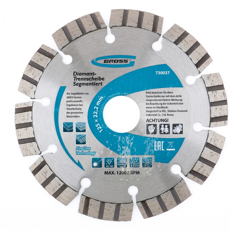 Диск алмазный лазерная приварка турбо-сегментов сухое резание 125х22,2 мм Gross