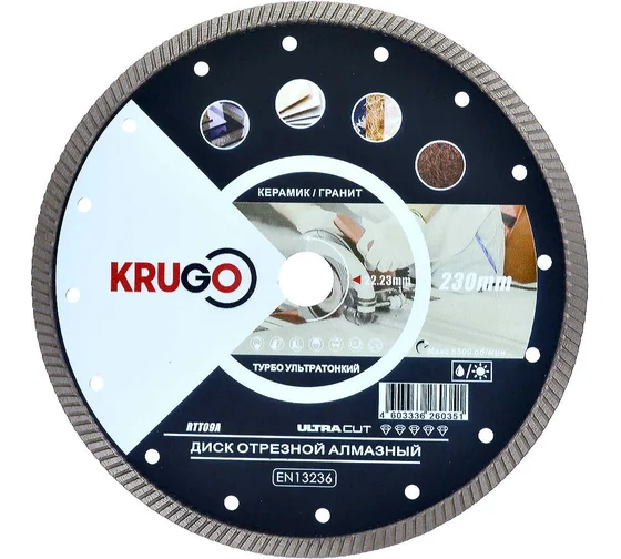 Диск алмазный супертонкий турбо 230х1,8х22,23х10 мм KRUGO
