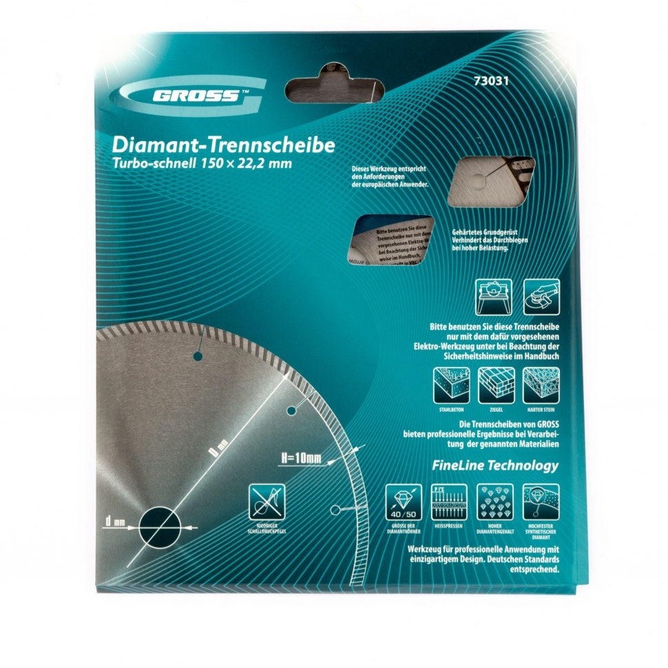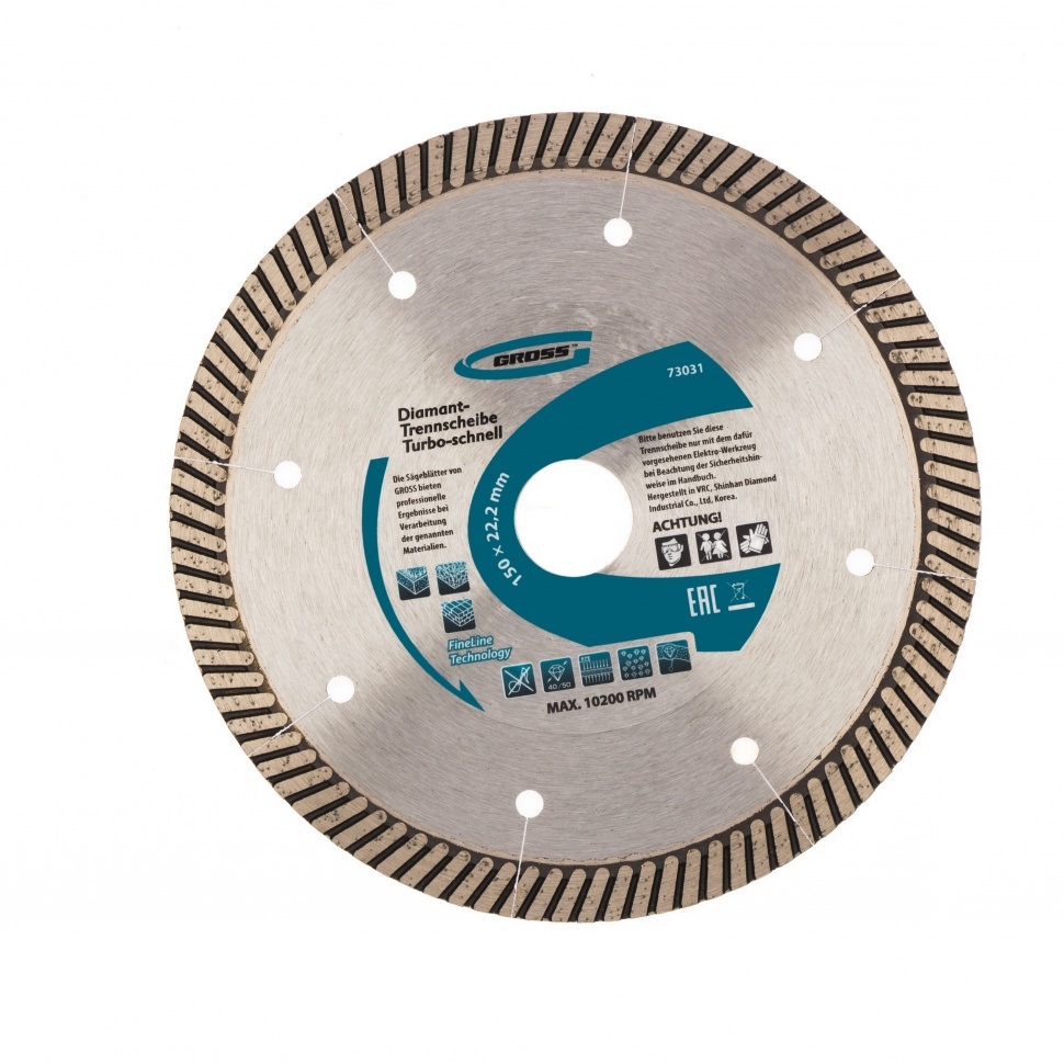 Диск алмазный турбо с лазерн.перфорац. сухое резание 150х22,2 мм Gross