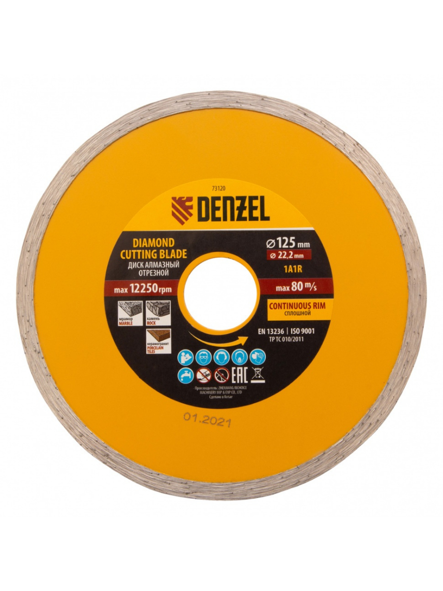 Диск отрезной алмазный сплошной мокрое резание 125х22,2 мм Denzel