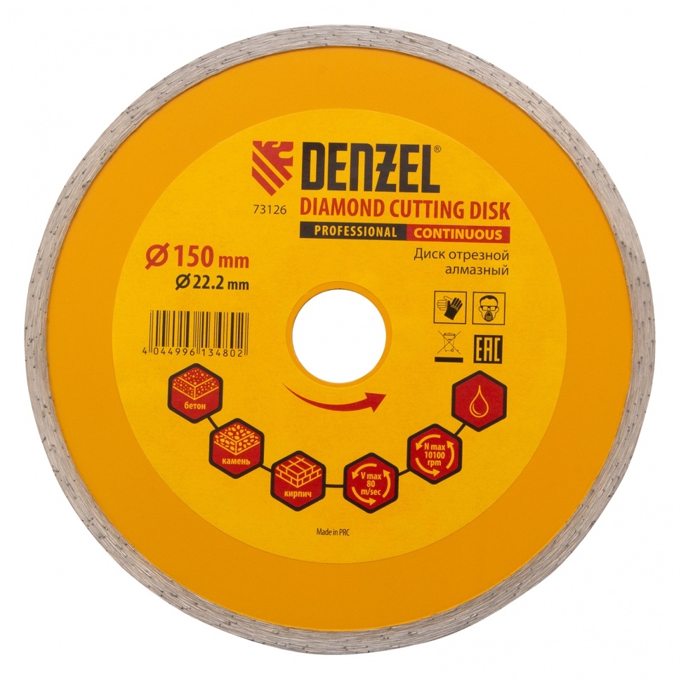 Диск отрезной алмазный сплошной мокрое резание 150х22,2 мм Denzel