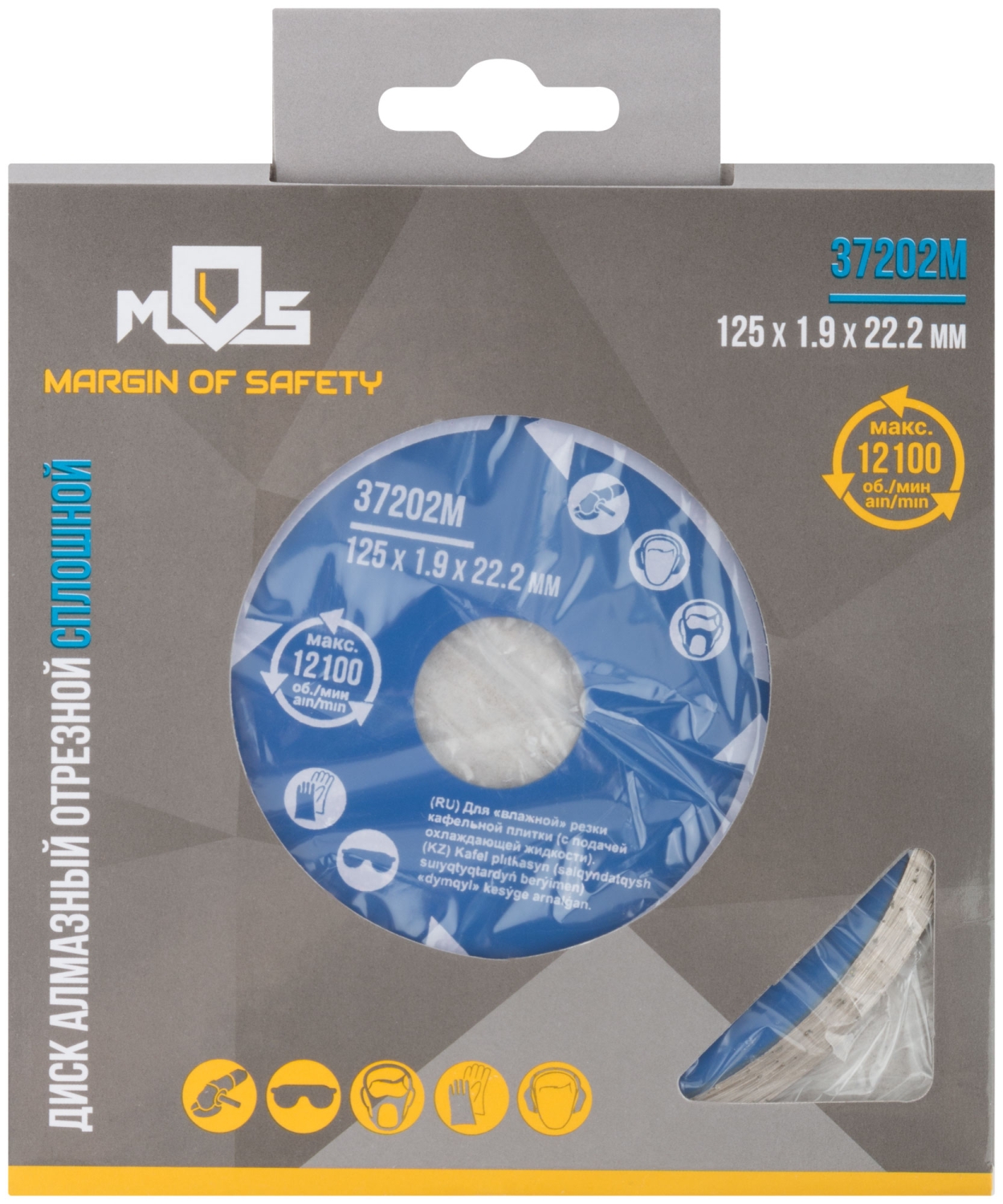 Сплошной. Для использования с УШМ. Посадочный диаметр 22,2 мм. Для "влажной" резки кафельной плитки (с подачей охлаждающей жидкости).<br/>Сплошная алмазная режущая кромка, высотой 5 мм, обеспечивает точный и ровный рез. Материал: инструментальная сталь, режущая кромка - расплав<br/>с техническими алмазами. Упаковка: блистер.
