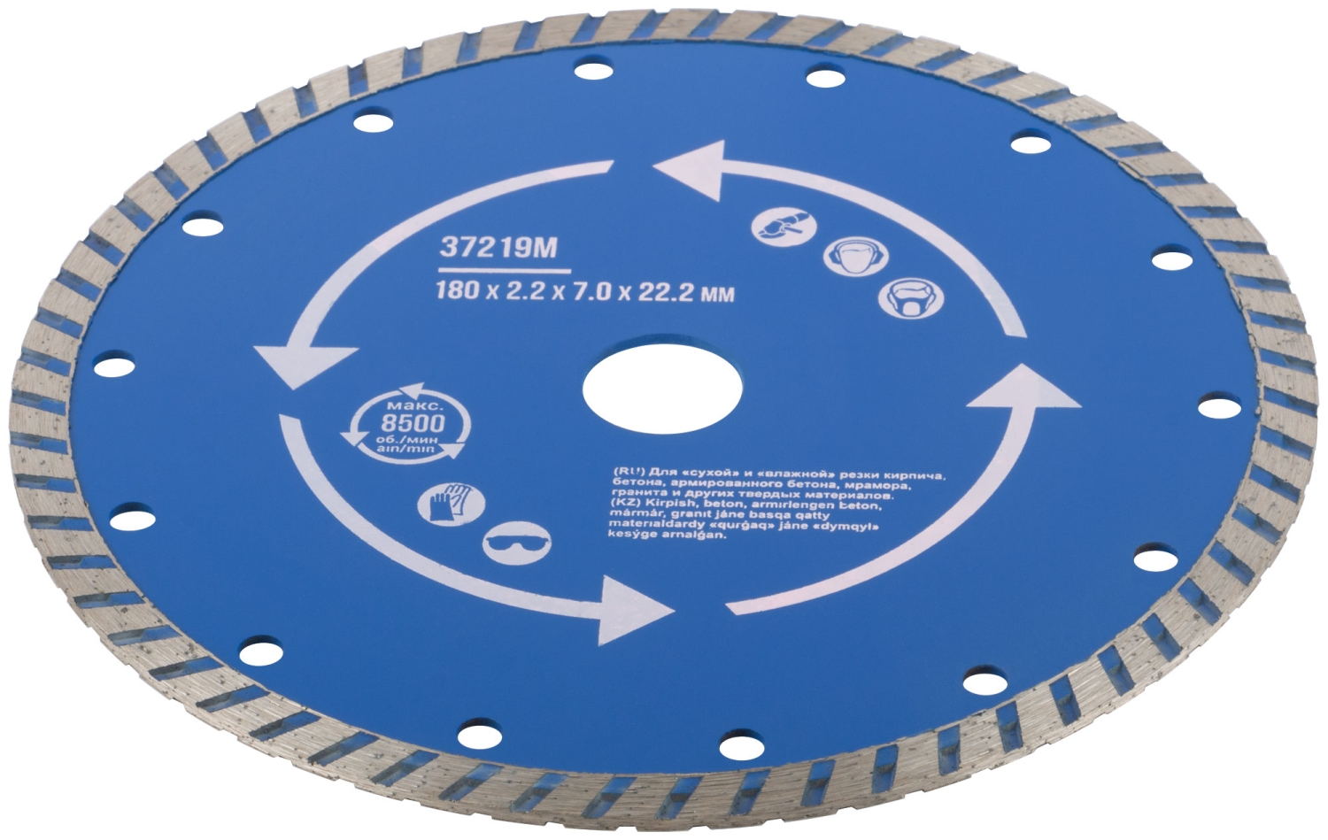 | Диск отрезной алмазный турбо (сухая и влажная резка) 125х1,9х7,0х22,2 мм | 37217М | 1 шт. |