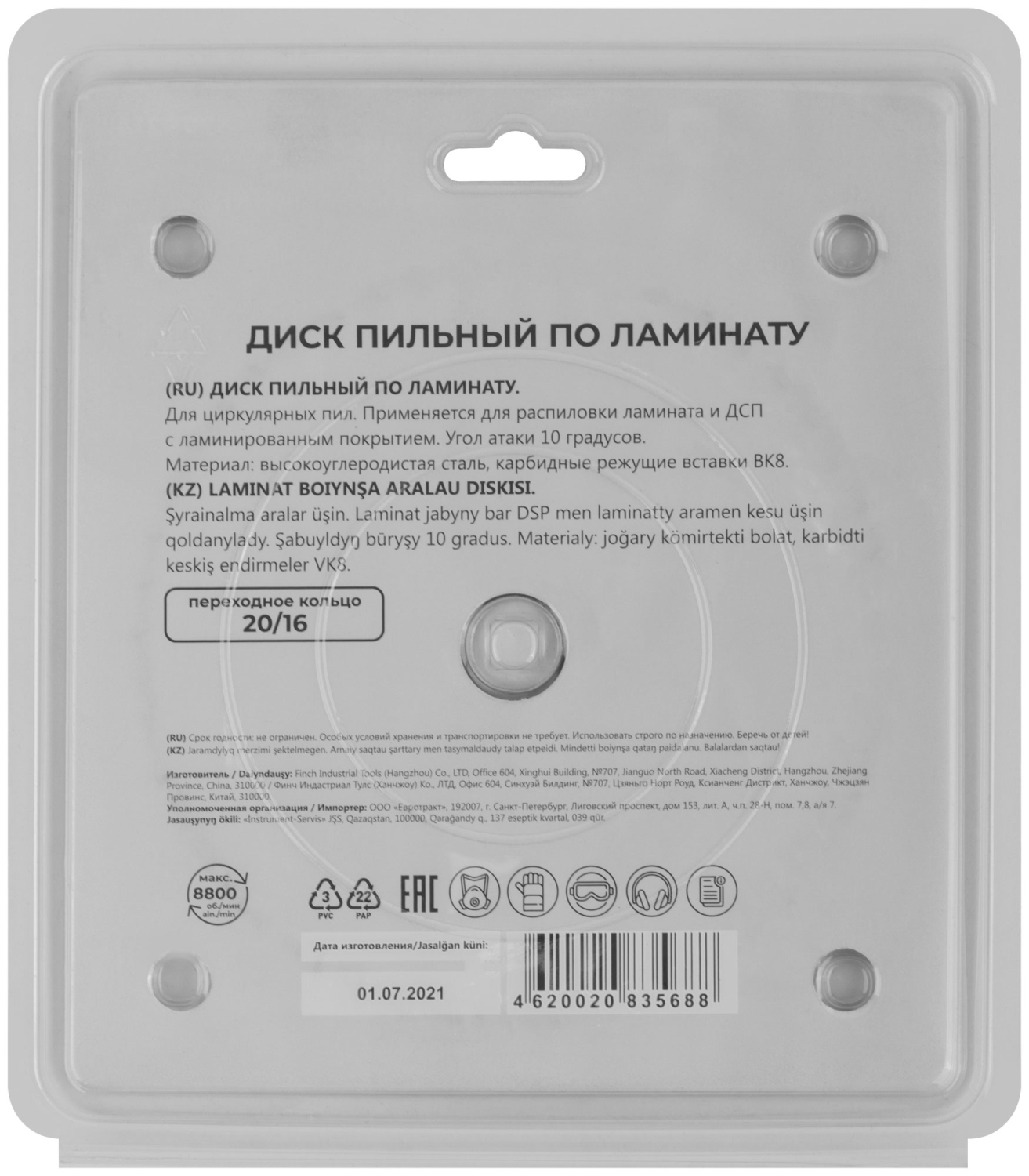По ламинату. Зубья из твердого сплава ВК8 (карбид вольфрама). Корпус из легированной высокоуглеродистой стали. Угол атаки +10°. Упаковка: блистер.