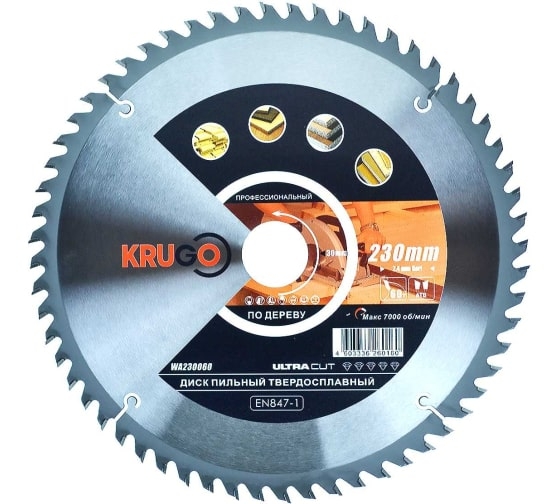 Диск пильный по дереву 230х2,4/1,6х60Тх30 мм KRUGO WA230060шт 1 шт.