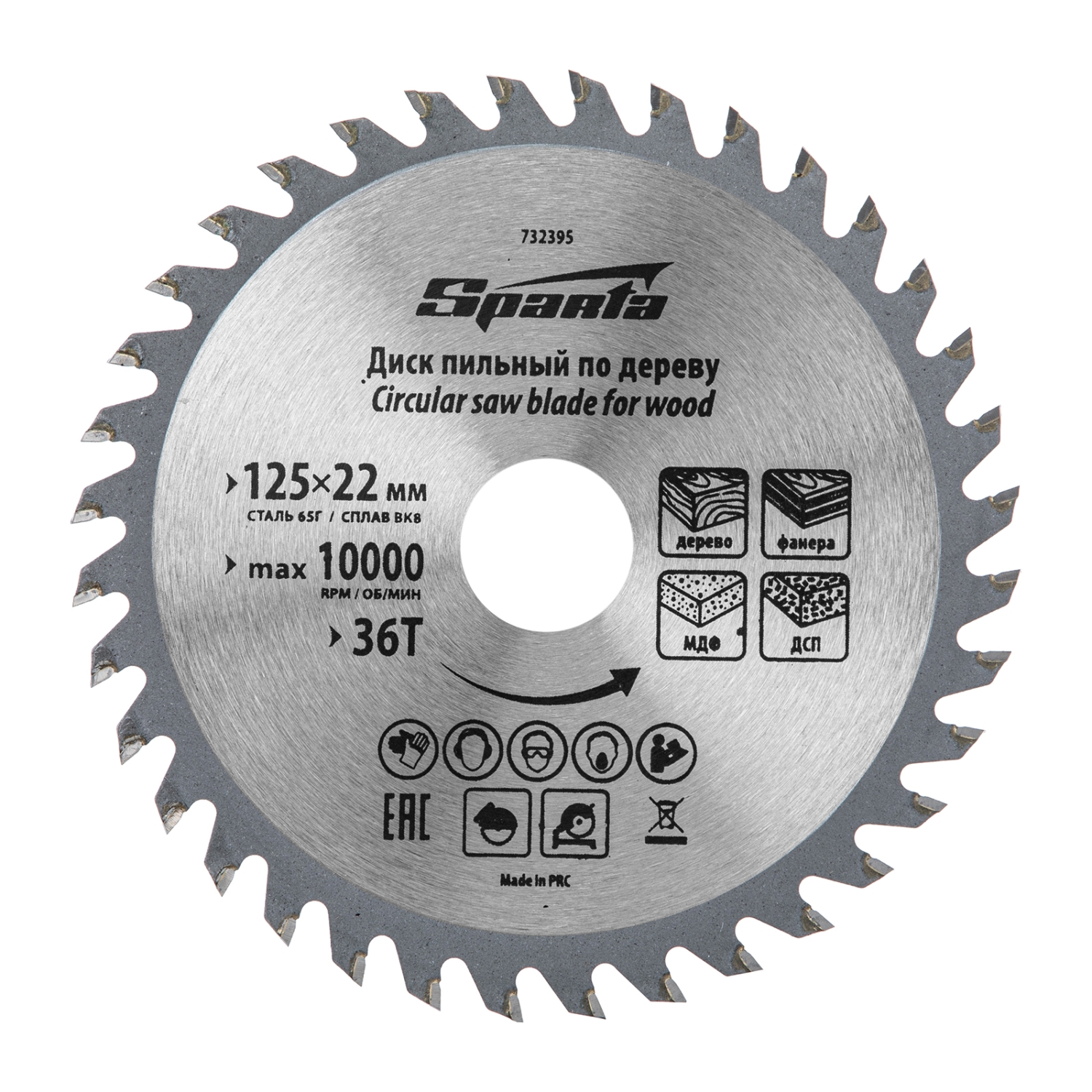 Диск пильный по дереву 125х22 мм 36 зубьев Sparta