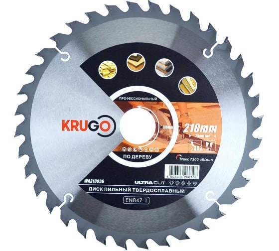 Диск пильный по дереву 210х2,4/1,6х36Тх30 мм KRUGO
