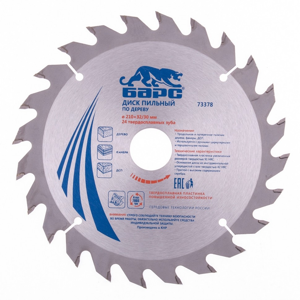 Диск пильный по дереву 210х32 мм 24 зуба + кольцо 32/30 мм Барс