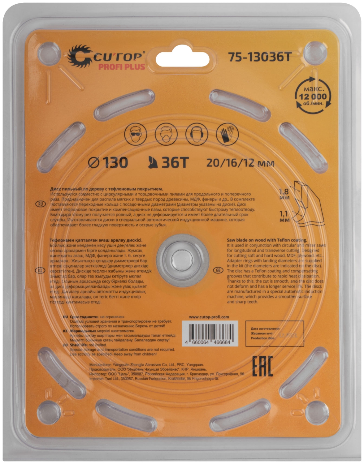 Диск пильный по дереву с тефл.покр.36Т CUTOP Profi Plus 130х1,1/1,8х20/16/12 мм