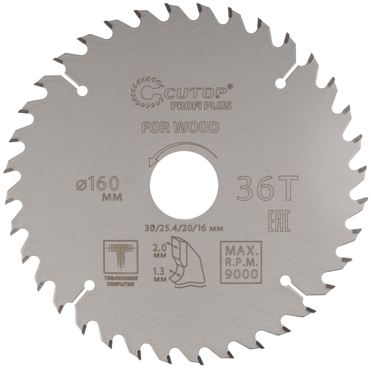 Диск пильный по дереву с тефл.покр.36Т CUTOP Profi Plus 160х1,3/2,0х30/25,4/20/16 мм