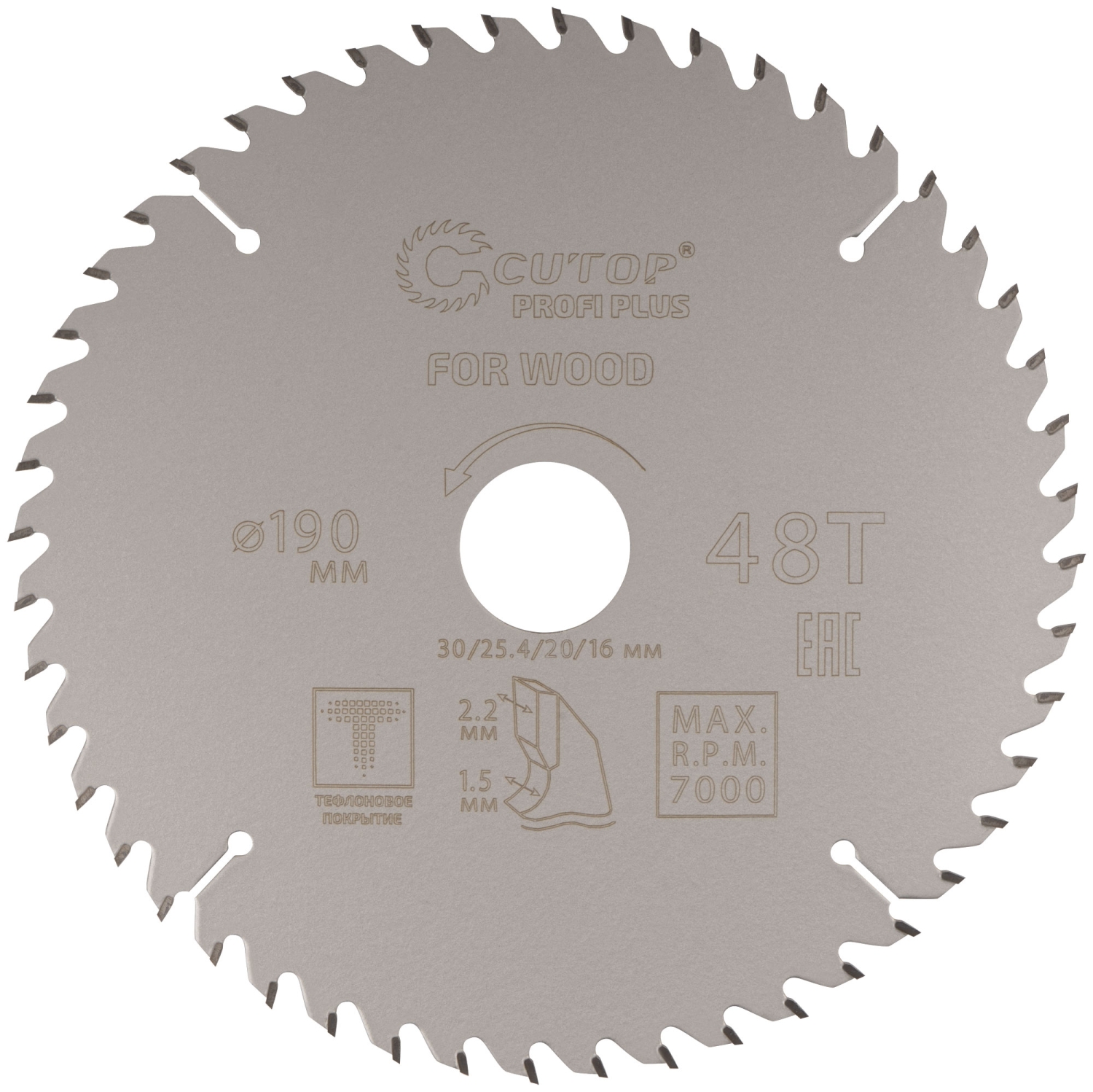 Диск пильный по дереву с тефл.покр.48Т CUTOP Profi Plus 190х1,5/2,2х30/25,4/20/16 мм