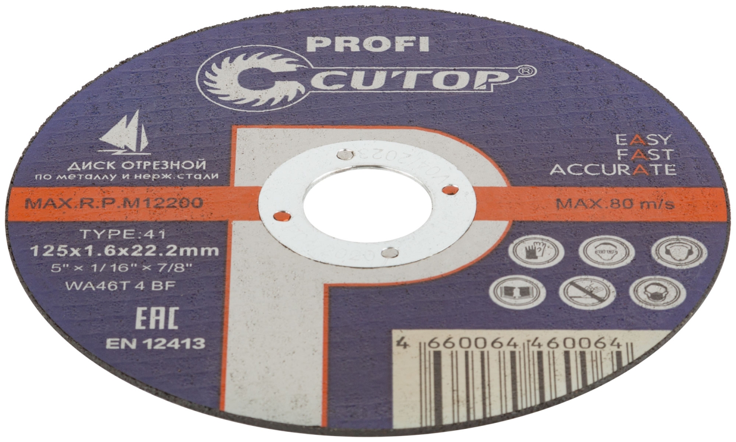Диск Проф отрезной по мет и нерж.стали Т41-125х1,6х22,2 мм Cutop Profi