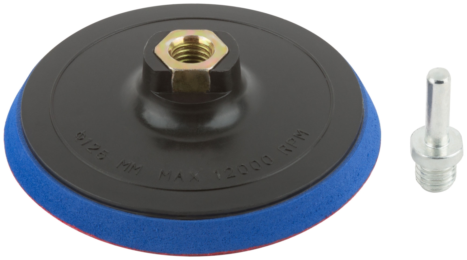 С липучкой. Используется со шлифовальными и<br/>полировальными кругами. Гайка М14 для установки на шлифовальные и отрезные машины. В комплекте переходник со штифтом для крепления<br/>на дрель. Материал: инструментальная сталь,<br/>пластик, подложка из ЭВА.