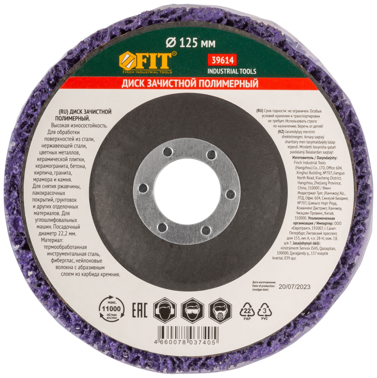 Диск зачистной полимерный, фиолетовый, посадочный диаметр 22,2 мм, 125 мм. Увеличенный рабочий ресурс за счет высокой плотности волокон и повышенного содержания абразива. Для обработки поверхностей из стали, нержавеющей стали, цветных металлов, керамической плитки, керамогранита, бетона, кирпича, гранита, мрамора и камня. Для снятия лакокрасочных покрытий, грунтовок и других отделочных материалов. Эффективно удаляет загрязнения с минимальным повреждением поверхности. Посадочный диаметр 22,2 мм. Материал: инструментальная сталь, фиберглас, нейлоновые волокна с абразивным слоем из карбида кремния.