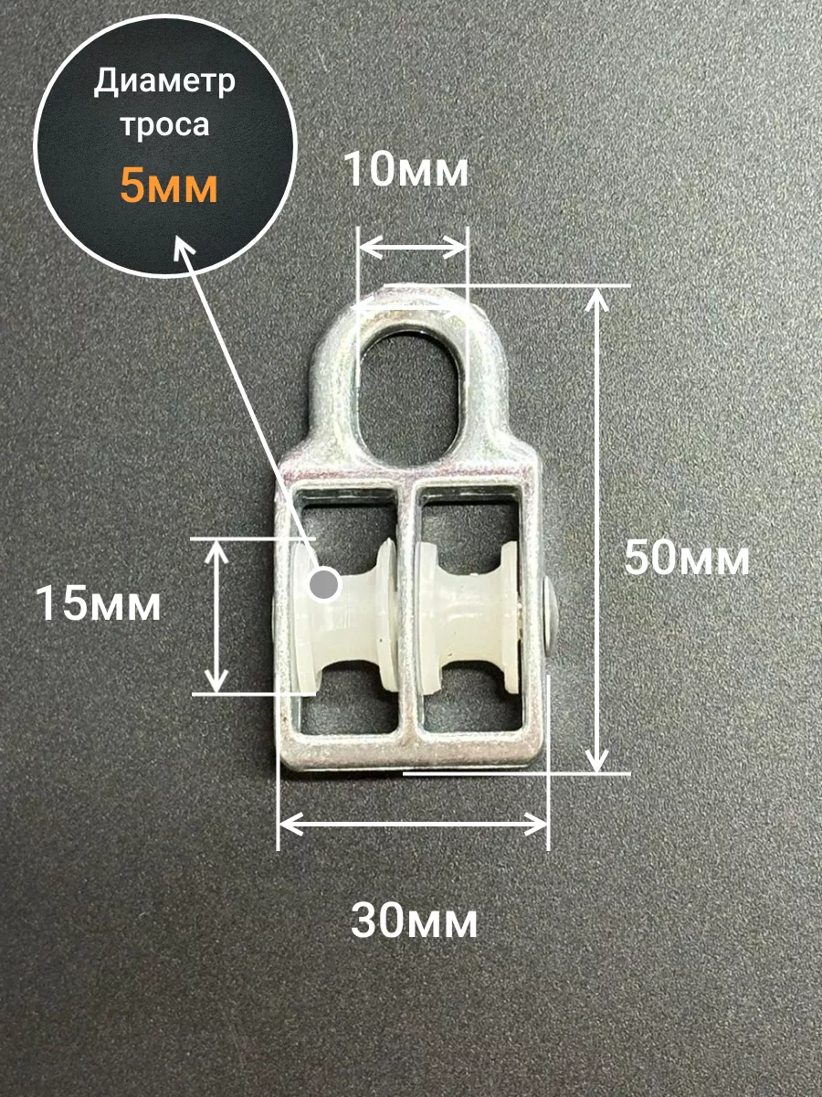 Двойной блок ролик 15 мм/5 с пластиковым шкивом, 1 шт.