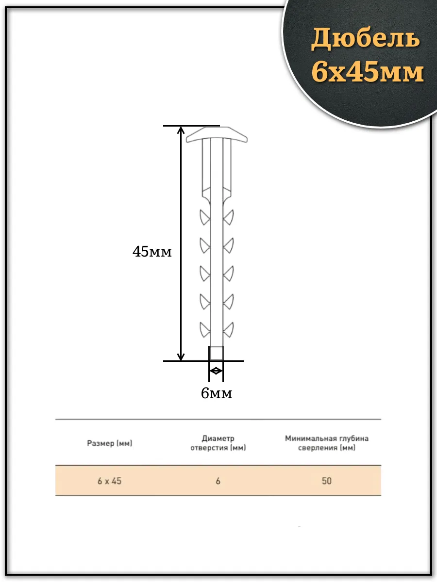 Дюбель для кабель-канала (трубной клипсы) 6х45 мм, 50 шт.