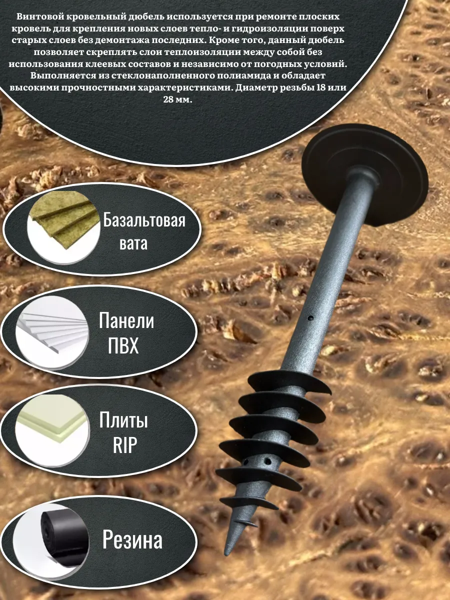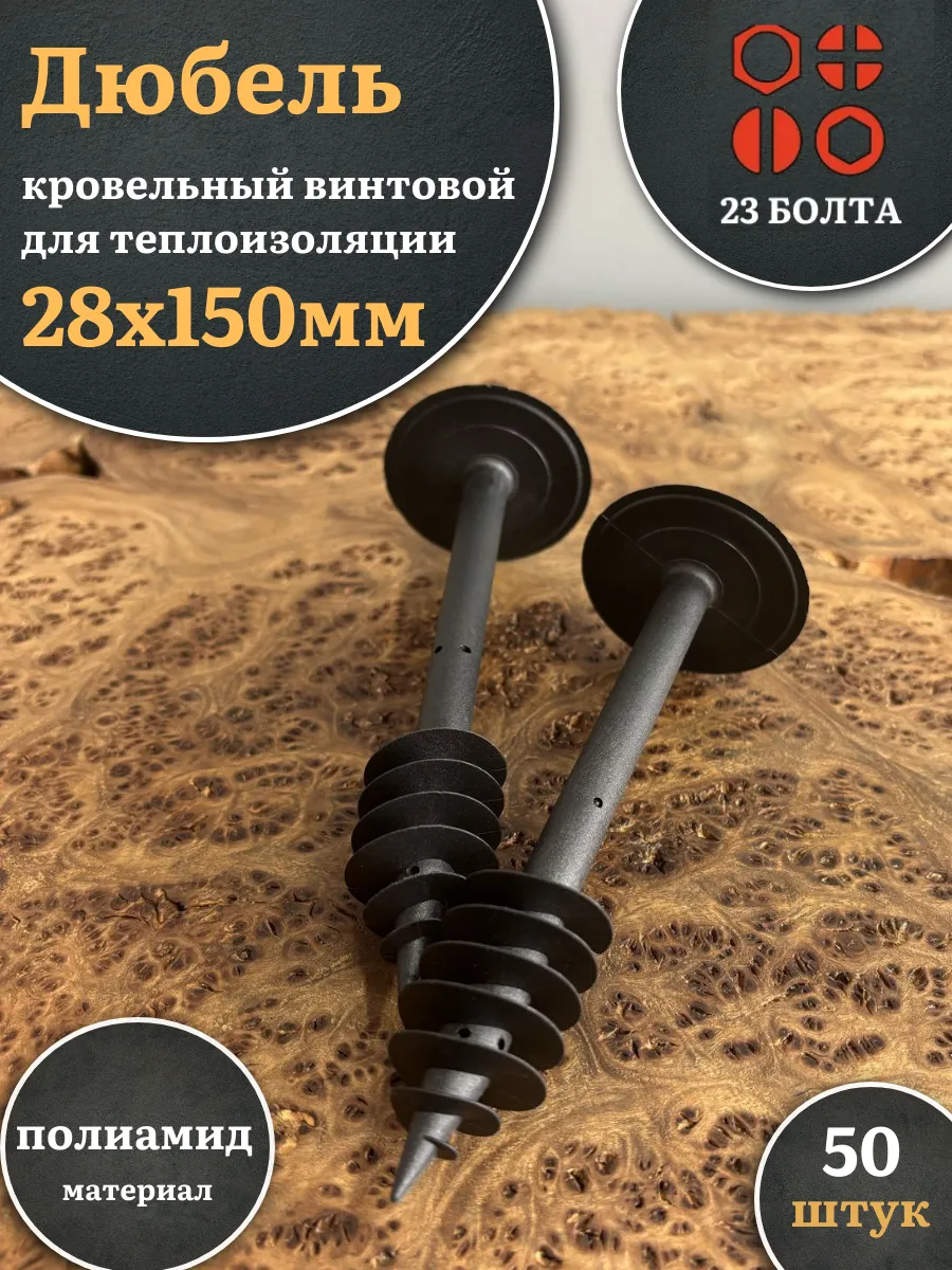 Дюбель кровельный винтовой для теплоизоляции 28х150 мм,50 шт.
