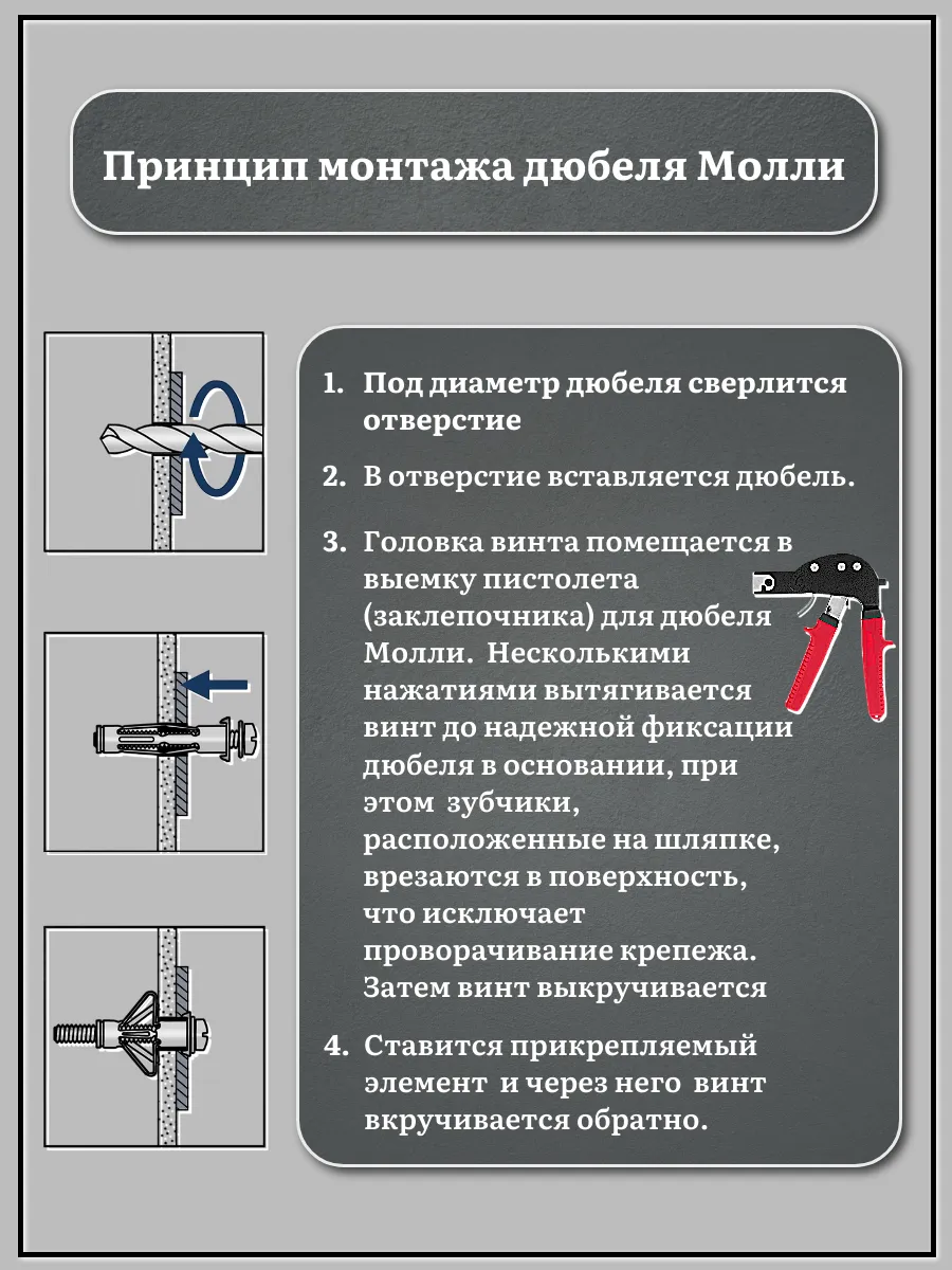 Дюбель MOLLY 4х64 для пустотелых конструкций, 10 шт.