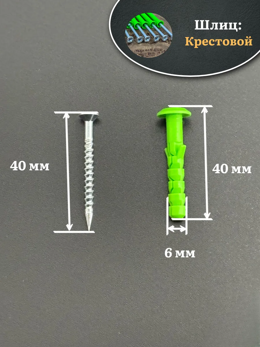 | Дюбель с шурупом ГРИБ 6х40 зеленый, 50 шт | РКГ00016684ф50 | 1 шт. |