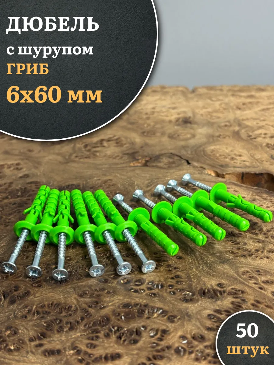 | Дюбель с шурупом ГРИБ 6х60 зеленый, 50 шт | РКГ00016686ф50 | 1 шт. |