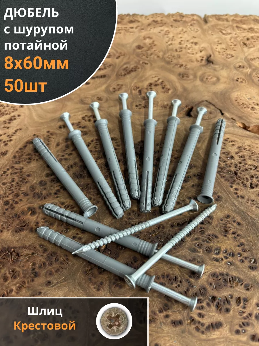 Дюбель с шурупом потайной 8х60