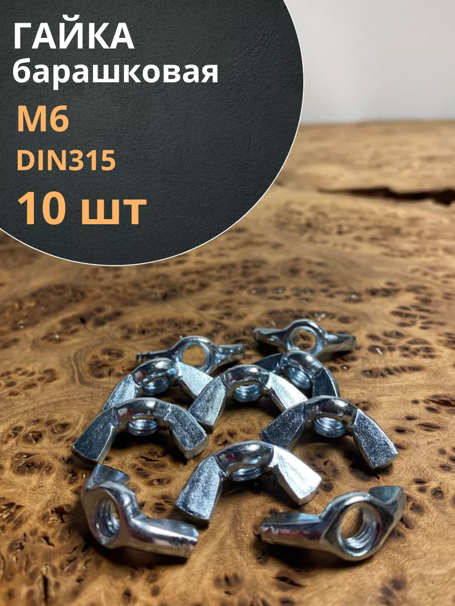 Гайка барашковая М6 ОЦ DIN315 , 10 шт.