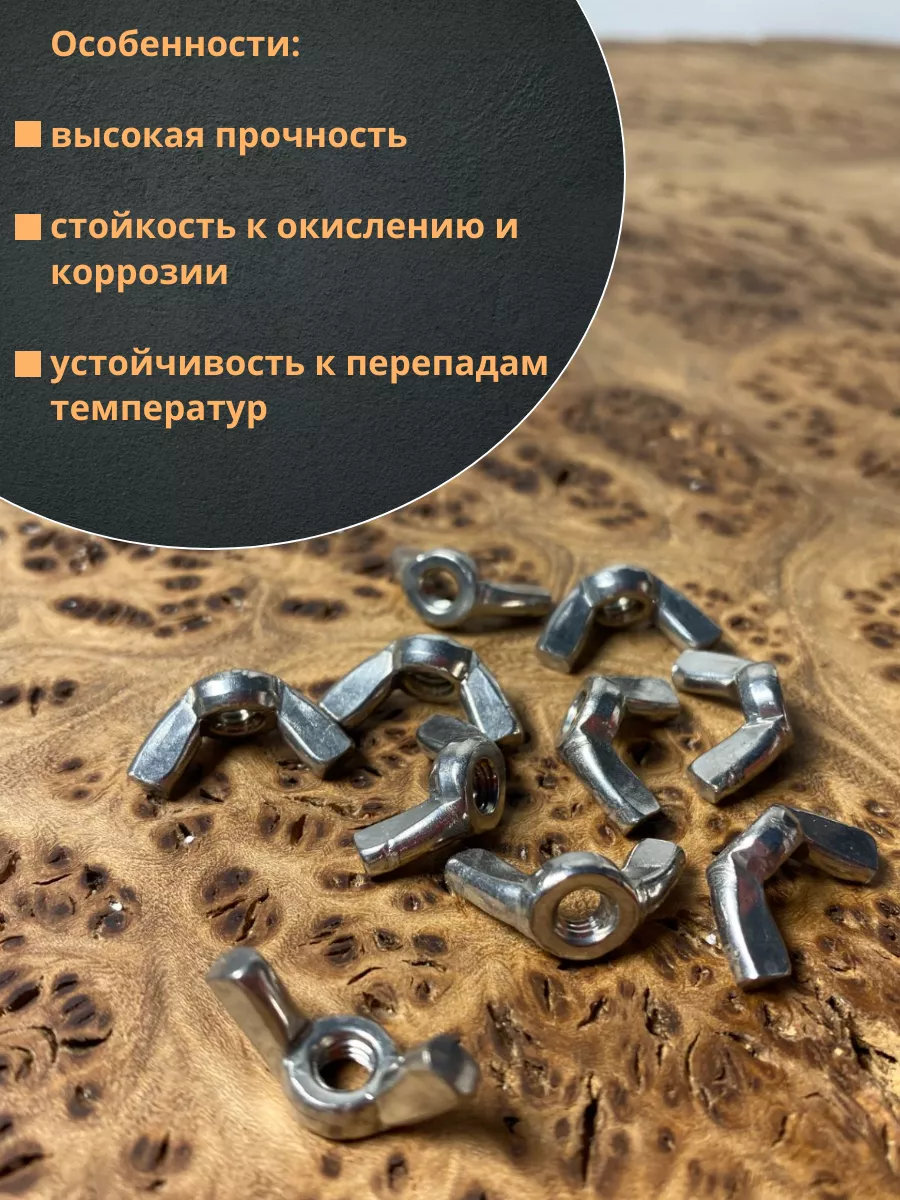Гайка барашковая нержавеющая М4 DIN315 , 10 шт.