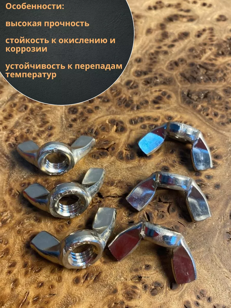 Гайка барашковая нержавеющая М6 DIN315 , 10 шт.