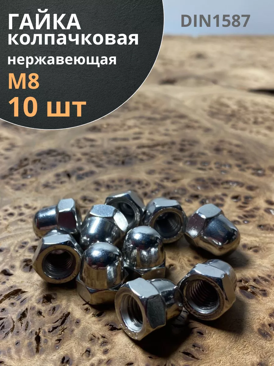 Гайка колпачковая М8 нержавеющая А2 DIN1587 , 10 шт.