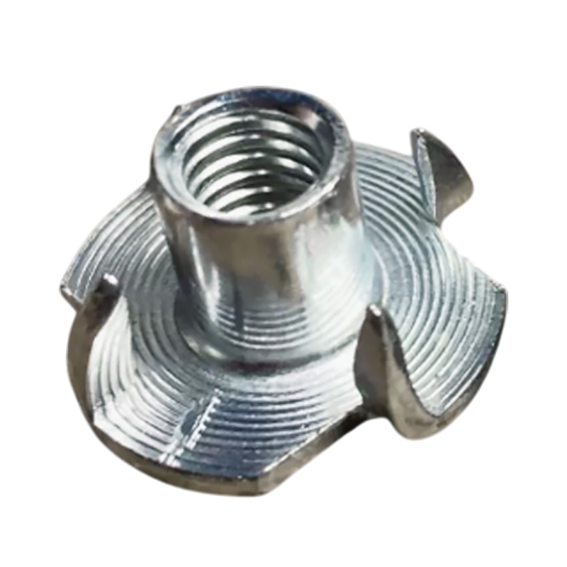 Гайка забивная, она же гайка врезная или усовая состоит из цилиндра с внутренней метрической резьбой и фланца с упорными усиками. Длины цилиндра (втулки) достаточно, чтобы гайка и установленный в нее винт создали прочное соединение. Зауженная конструкция усиков на фланце имеет зубчики: такую усовую гайку просто вбить в деревянный элемент, а в дальнейшем при эксплуатации зубчики не позволяют прокручиваться и предотвращают от выпадания из рабочего материала. Это узкоспециализированная гайка, используемая в производстве мебельных конструкций.