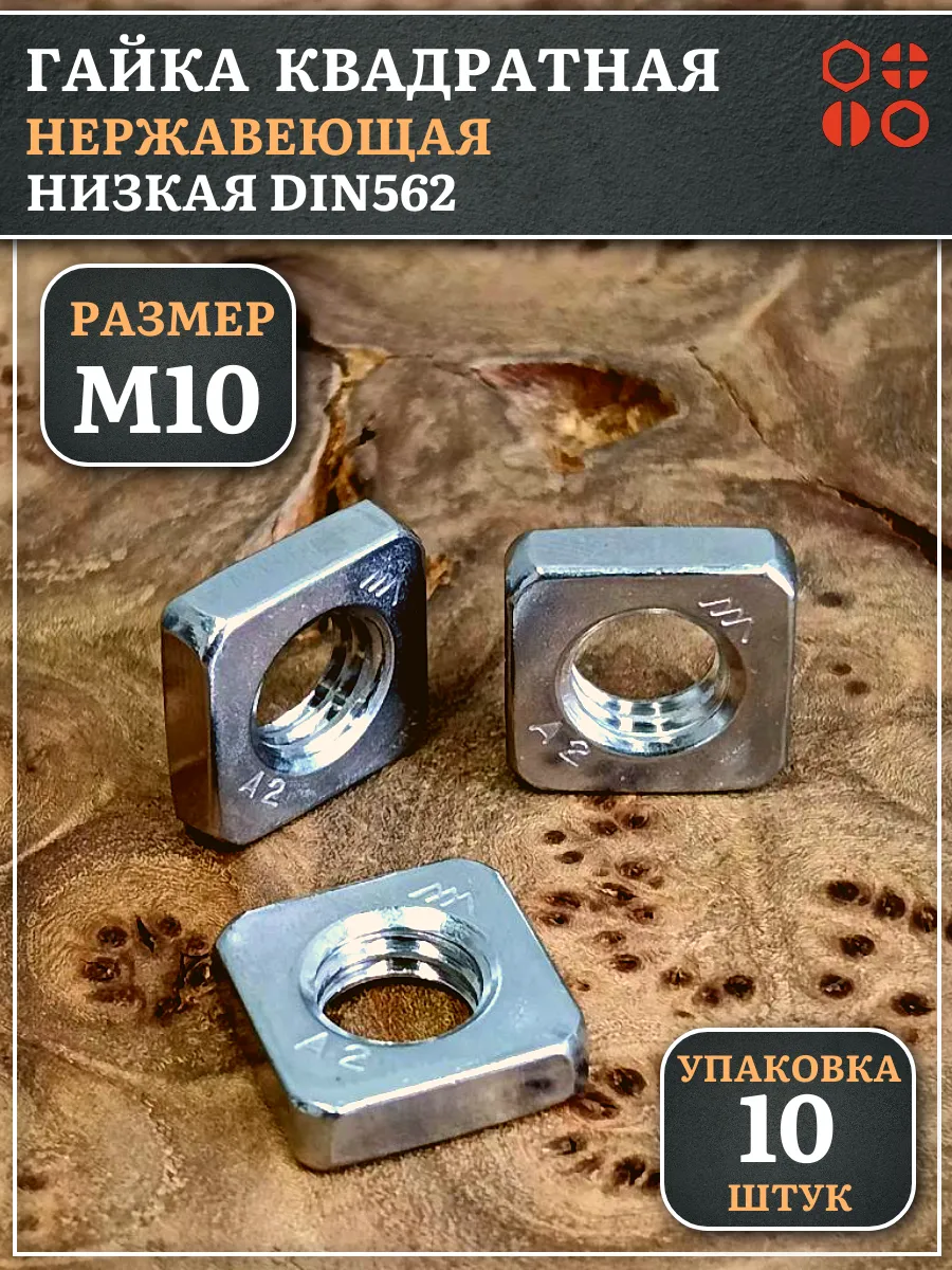 Гайка квадратная М10 нержавеющая низкая DIN562, 10 шт.