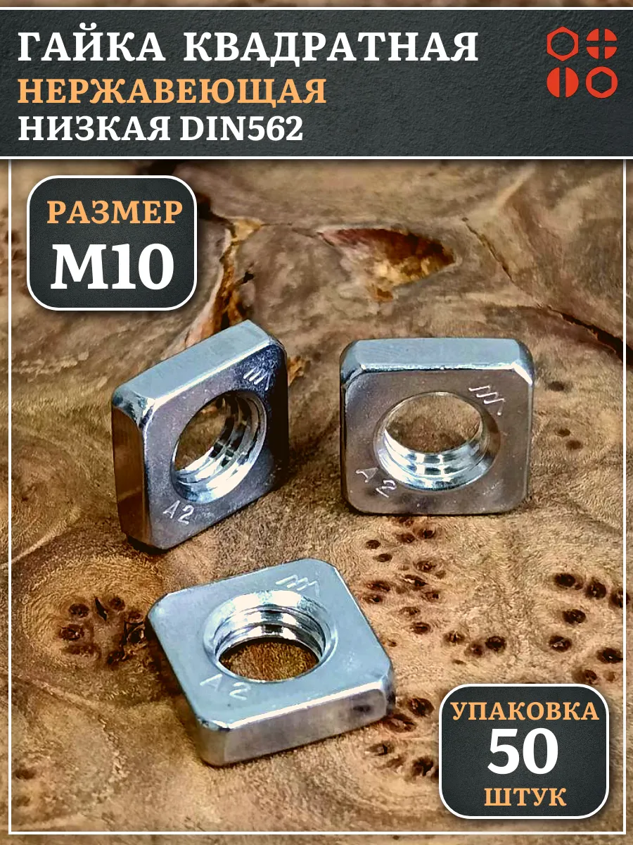 Гайка квадратная М10 нержавеющая низкая DIN562, 50 шт.