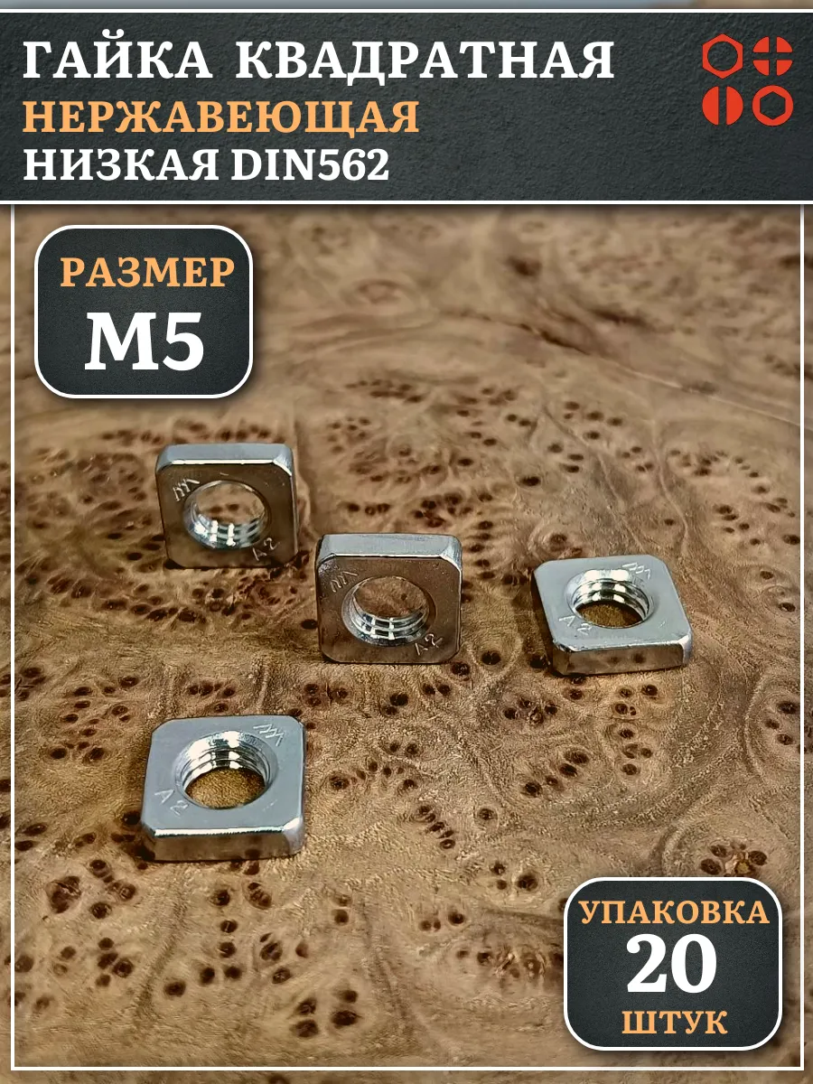 Гайка квадратная М5 нержавеющая низкая DIN562, 20 шт.