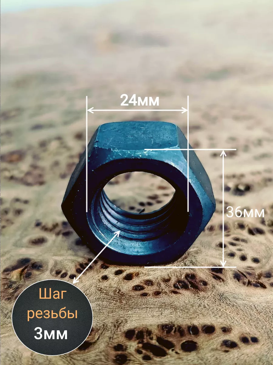 Гайка М24 высокопрочная черная к.п.12.9 DIN934, 10 шт.