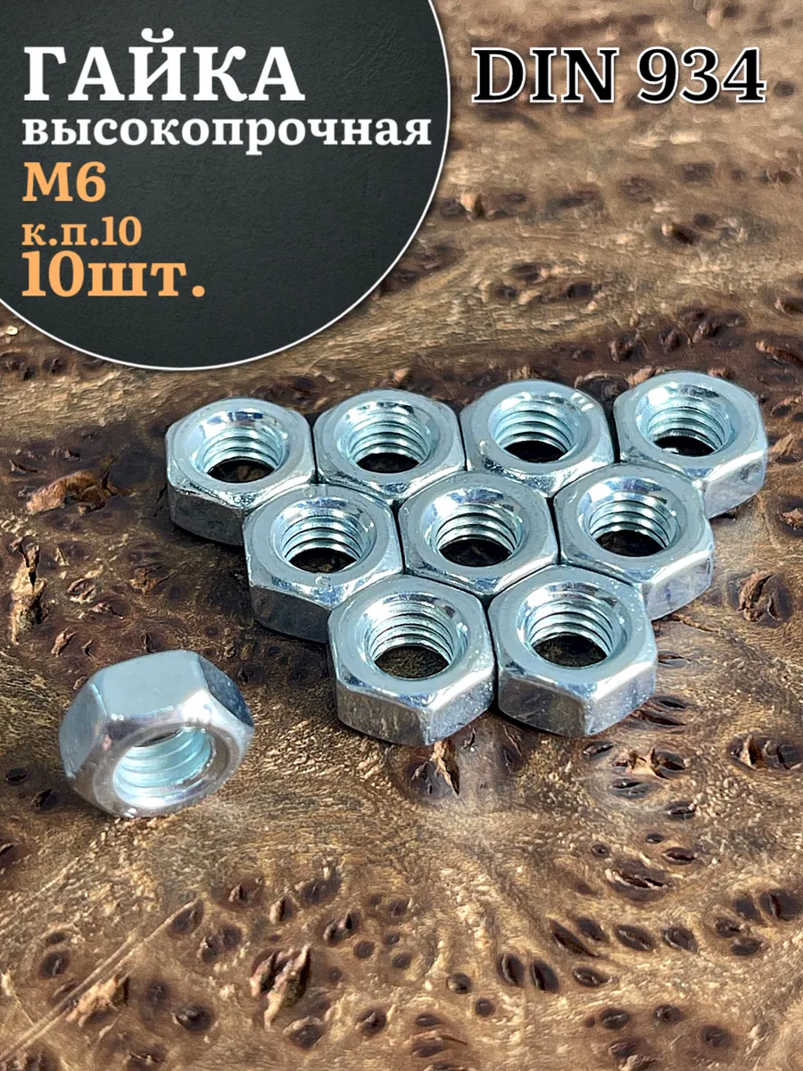 Гайка М6 высокопрочная оцинкованная к.п.10 DIN934, 10 шт.