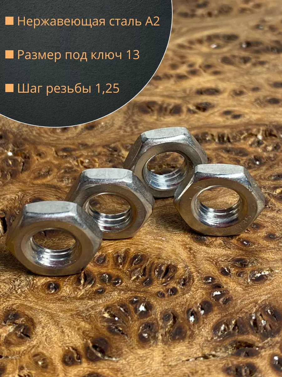 Гайка М8 шестигранная низкая нержавеющая DIN 439 , 10 шт.