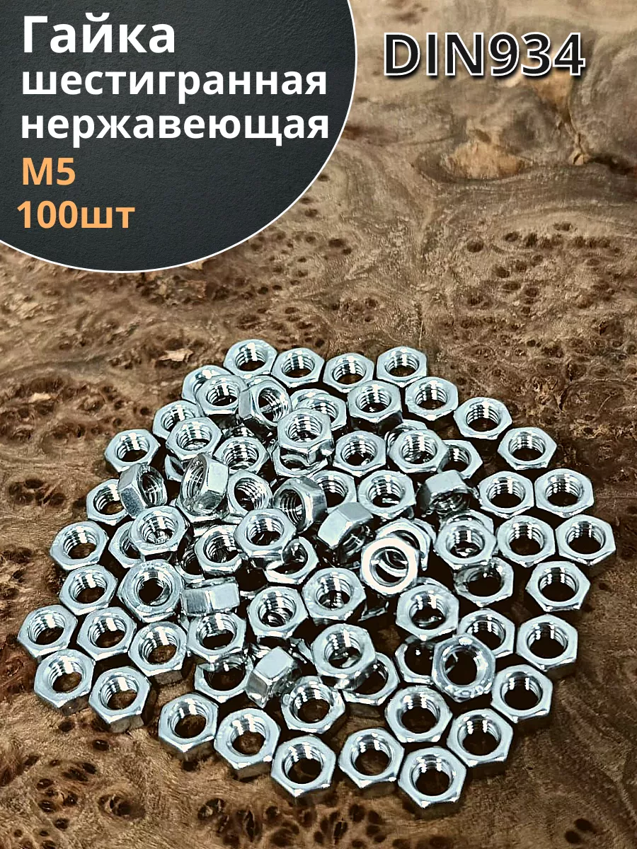 Гайка Нержавеющая М5 DIN 934 А2 шестигранная 100 шт
