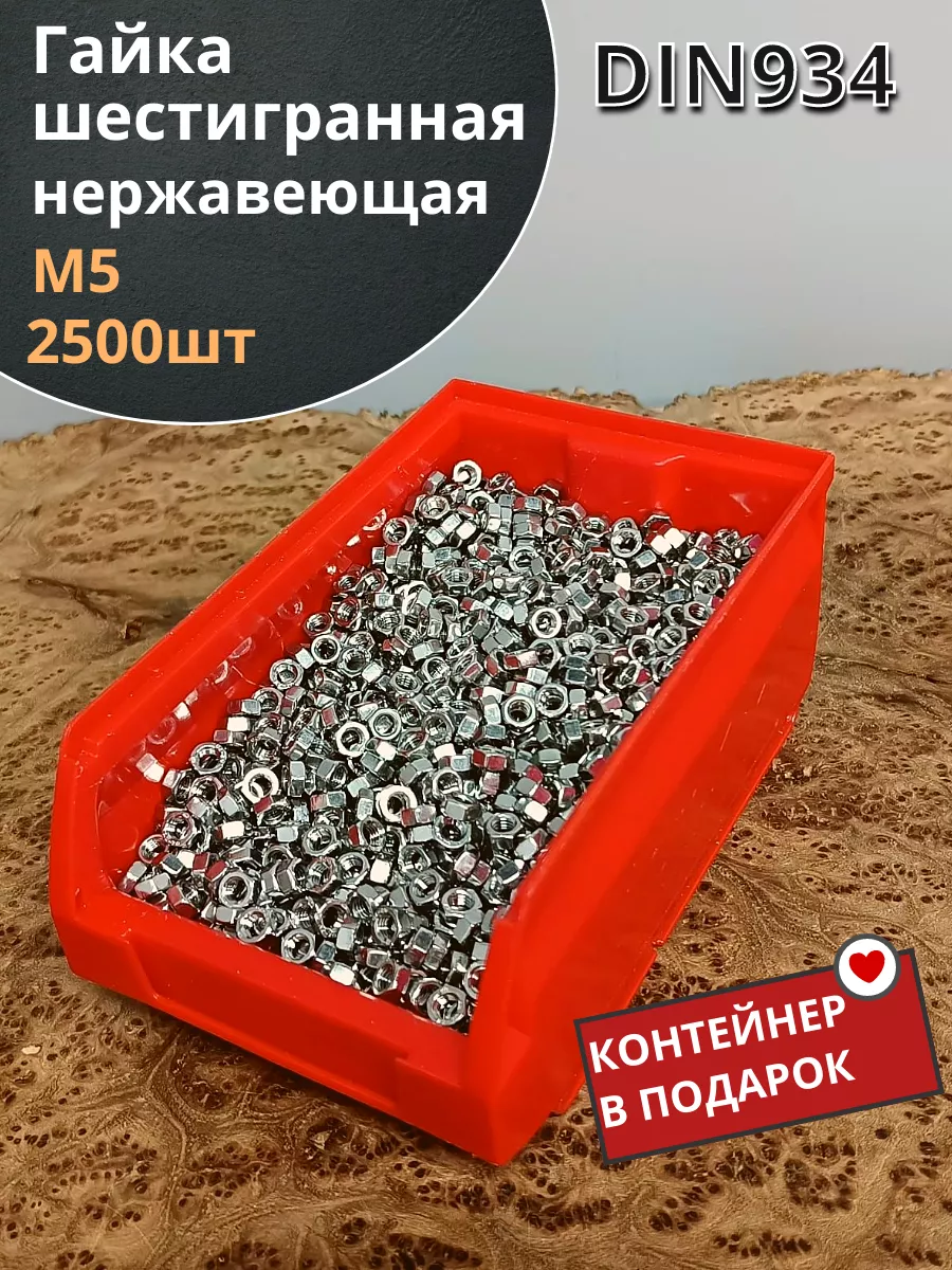 Гайка Нержавеющая М5 DIN934 шестигранная(2500шт)в контейнере