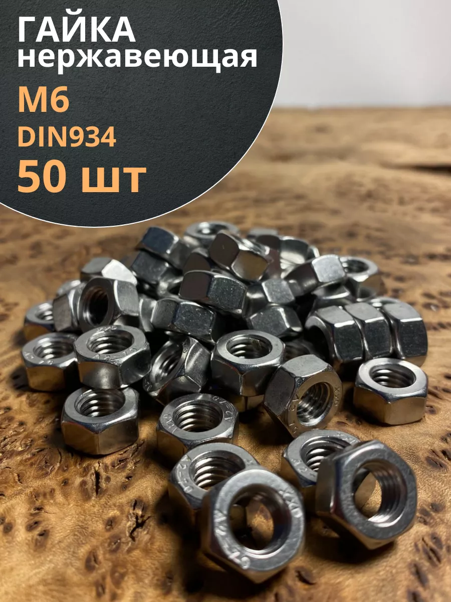 Гайка Нержавеющая М6 DIN 934 А2 шестигранная 50 шт