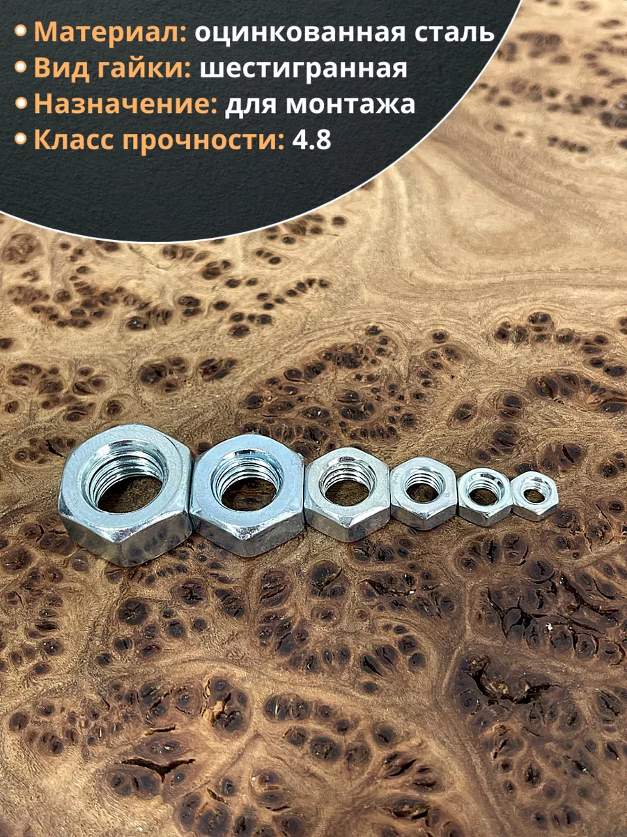 Гайка оцинкованная М4,5,6,8,10,12 DIN 934 (по 10 шт.)