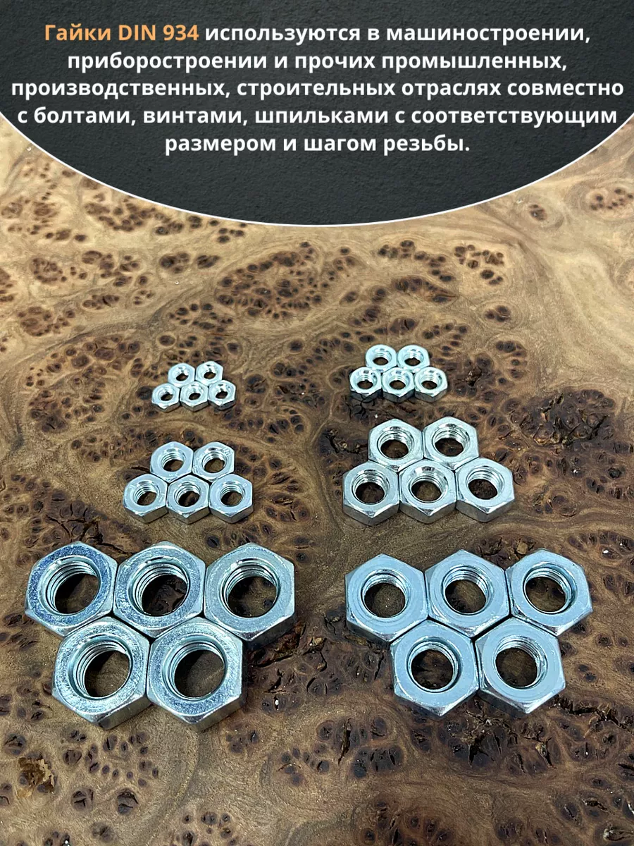 Гайка оцинкованная М4,5,6,8,10,12 DIN 934 (по 50 шт.) 11624 1 шт.