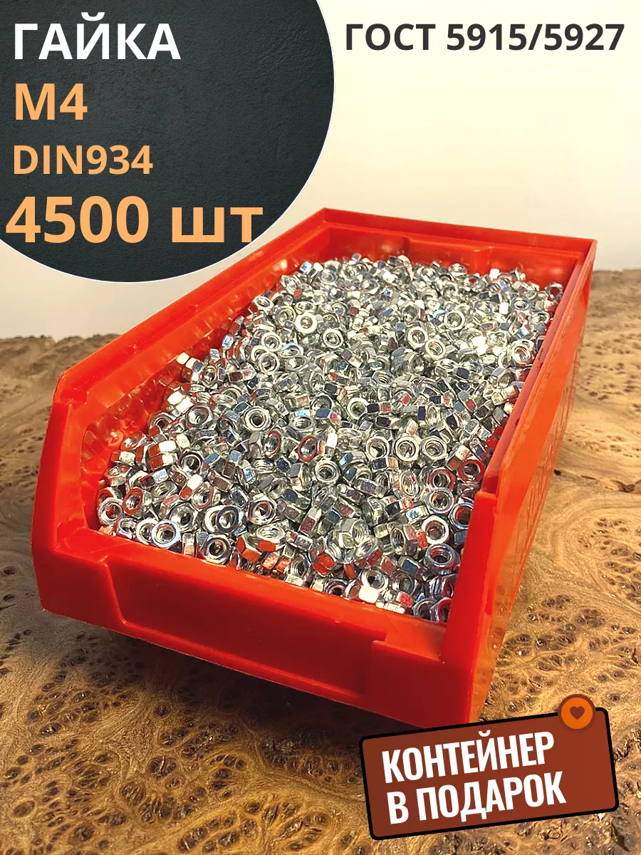Гайка оцинкованная М4 DIN934 шестигранная 4500 шт. контейнер