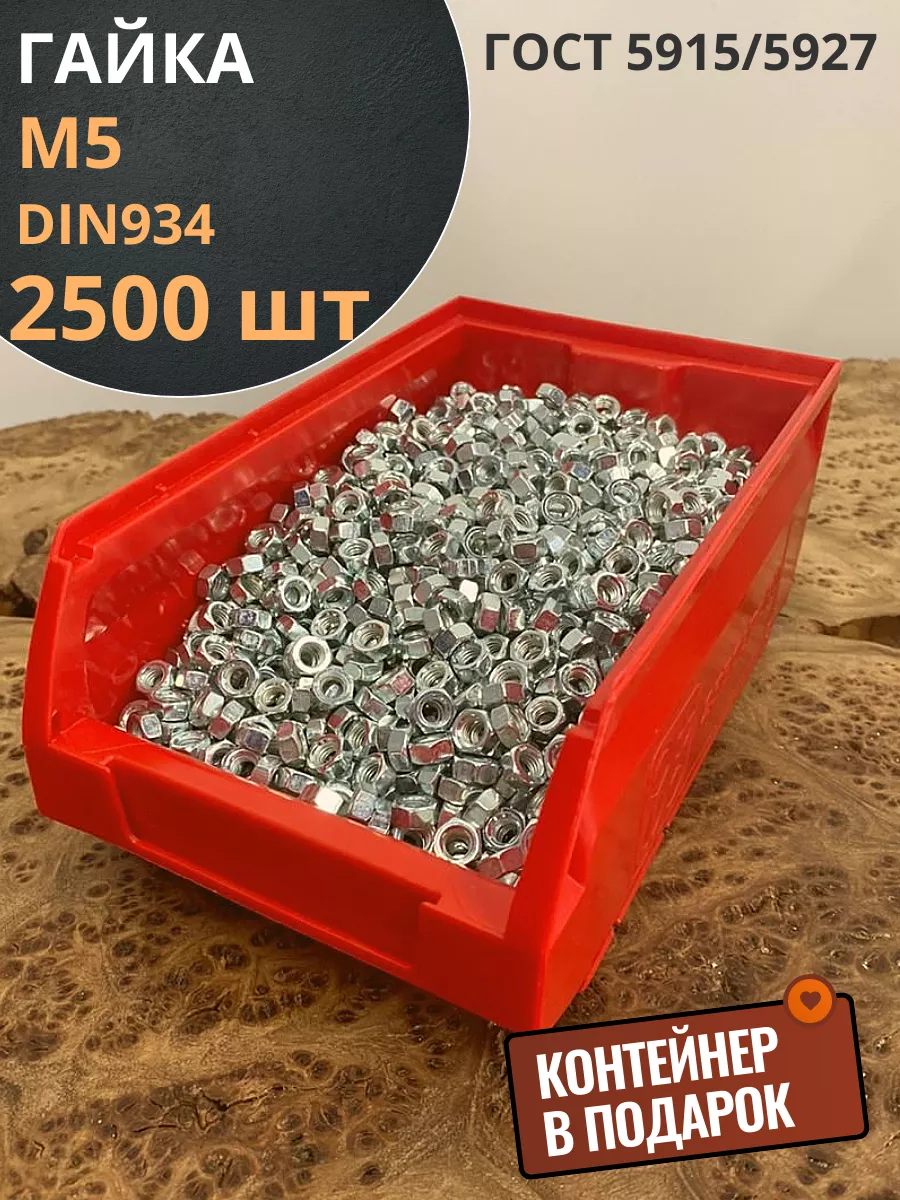 Гайка оцинкованная М5 DIN934 шестигранная 2500 шт. контейнер