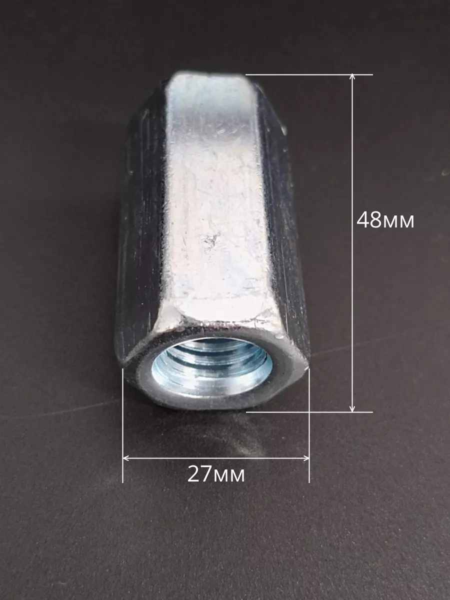 Переходная гайка представляет собой небольшой круглый фиксатор, имеющий длинную резьбу на внутренней стороне. Эта часть детали прикрепляется к внешней резьбе другого изделия (винт, болт, шпилька). Традиционным вариантом считаются модели в виде шестигранников. Также встречаются образцы в виде петельки или маленького колпачка. Чаще всего такие крепежи производятся из разных видов стали (легированная, углеродистая). Как правило, все соединительные гайки при производстве дополнительно покрываются цинковым нанесением.