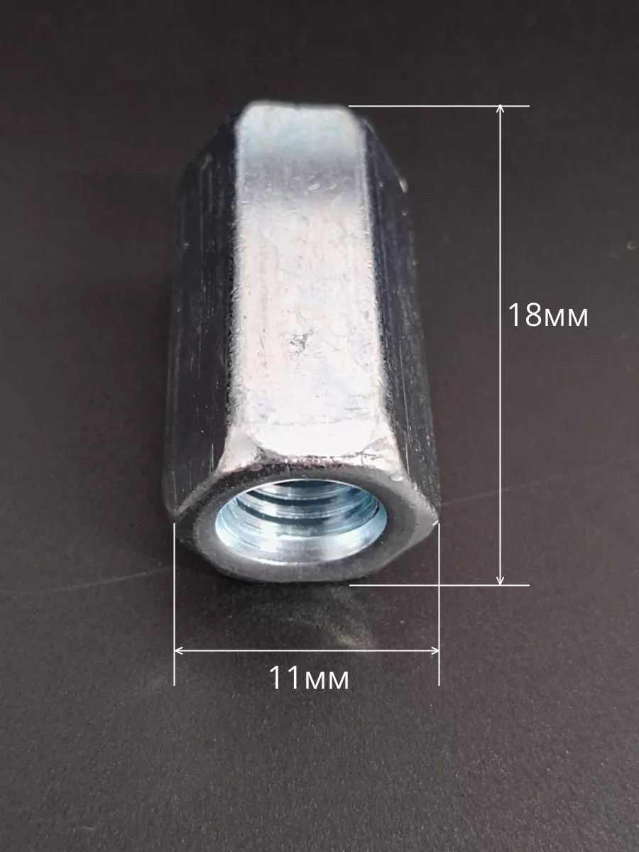 Переходная гайка представляет собой небольшой круглый фиксатор, имеющий длинную резьбу на внутренней стороне. Эта часть детали прикрепляется к внешней резьбе другого изделия (винт, болт, шпилька). Традиционным вариантом считаются модели в виде шестигранников. Также встречаются образцы в виде петельки или маленького колпачка. Чаще всего такие крепежи производятся из разных видов стали (легированная, углеродистая). Как правило, все соединительные гайки при производстве дополнительно покрываются цинковым нанесением.