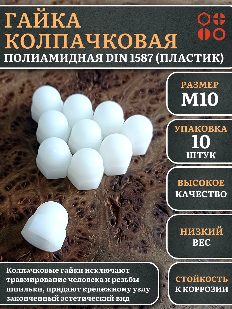 Гайка полиамидная колпачковая (пластик) М10 DIN1587, 10 шт.