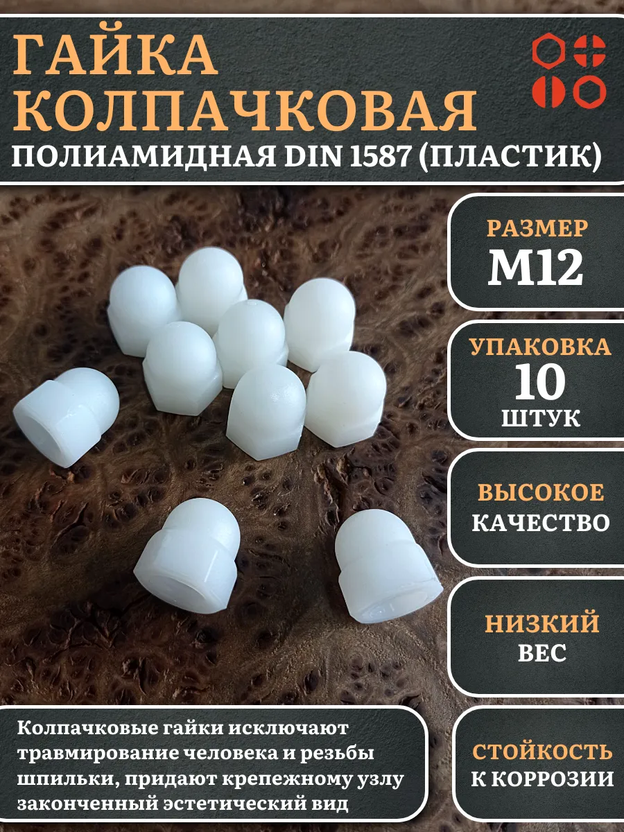 Гайка полиамидная колпачковая (пластик) М12 DIN1587, 10 шт.