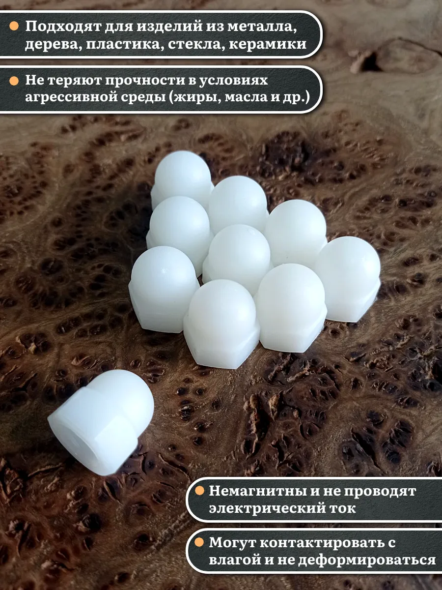 Гайка колпачковая DIN 1587 полиамидная (пластиковая) широко используется в строительстве, машиностроении, приборостроении, сборке габаритной техники и быту. Простая и надежная конструкция делает крепеж универсальным.