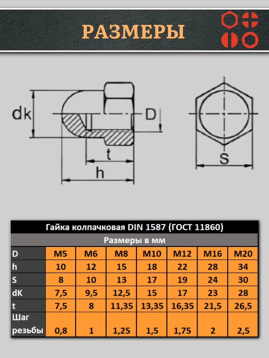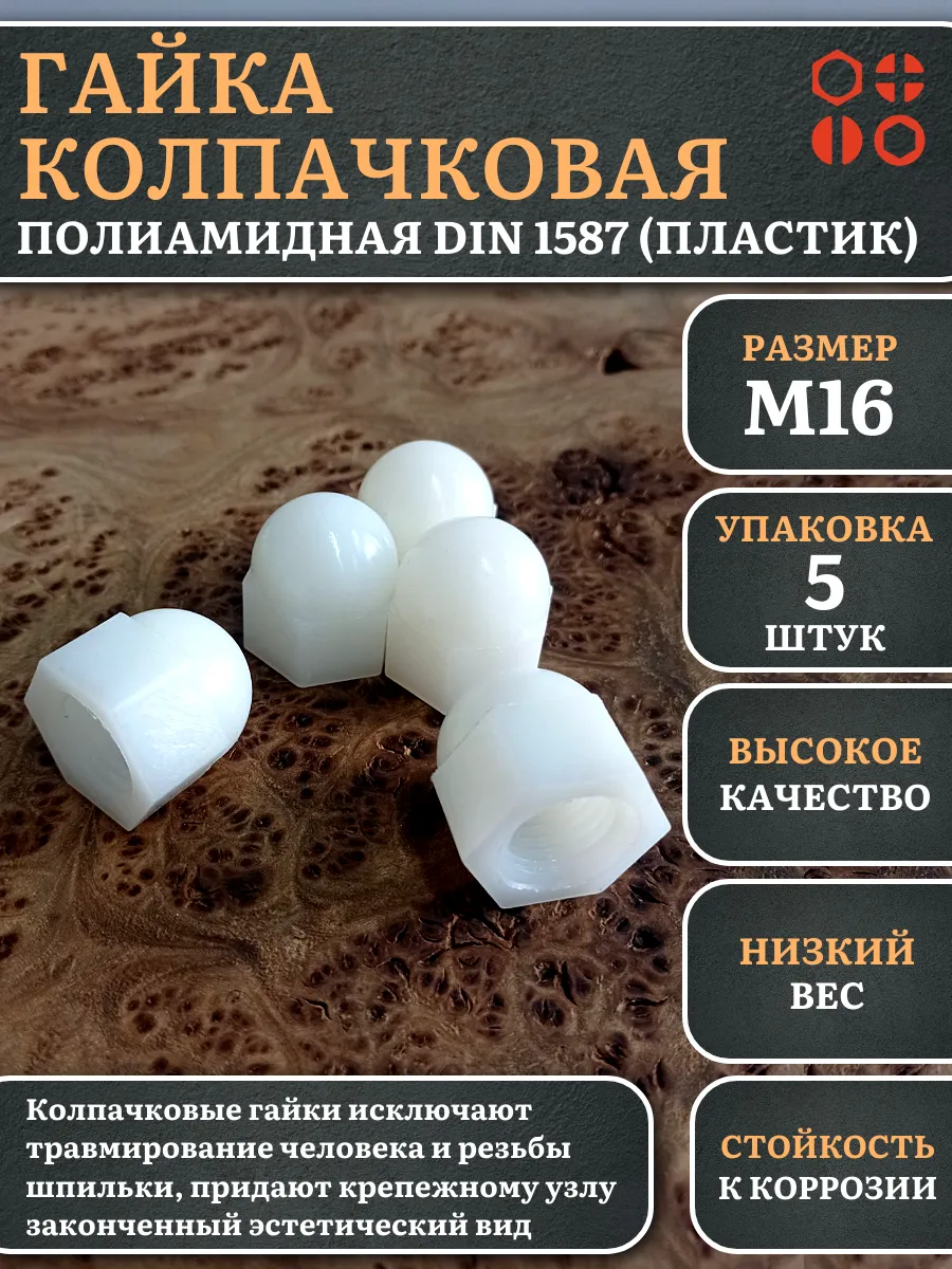 | Гайка полиамидная колпачковая (пластик) М16 DIN1587, 50 шт. | 2000000644257ф50 | 1 шт. |