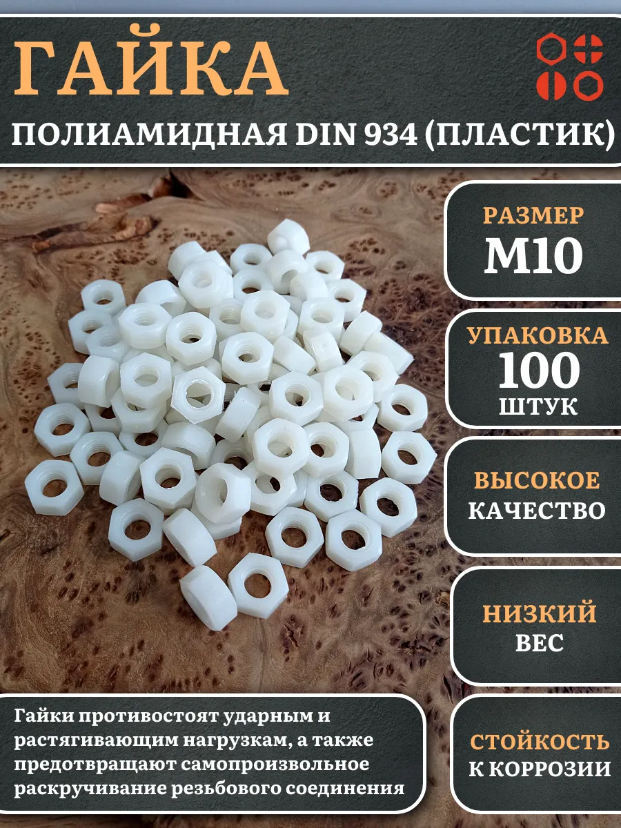 | Гайка полиамидная М10 DIN934 (пластик), 50 шт. | 2000000643014ф50 | 1 шт. |